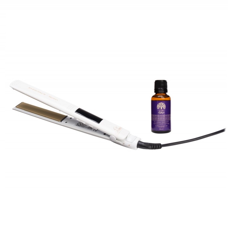 Gama ELEGANCE ARGAN – обеспечит незамедлительное улучшение волос сразу по нескольким параметрам. Моментально меняется внешний вид, волосы приобретают прочность и эластичность, сухие кончики увлажняются и приобретают гладкость, устраняется сухость кожи головы, а укладка держится дольше. Волосы становятся блестящими, шелковистыми и восстановленными. Ультратонкой дизайн и длинные 12-сантиметровые пластины позволяют превосходно выпрямить даже плотные и объемные волосы. С помощью регулируемой температуры 150°-230° Вы можете настроить прибор по вашему типу волос.