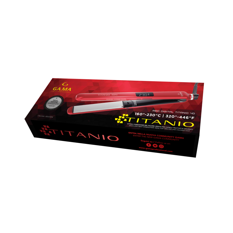 Выпрямитель RED DIGITAL TITANIO 4D оснащен большими плавающими 3х12 см полированными нагревательными пластинами с титановым покрытием, материала, который равномерно распределяет тепло по волосам, кроме того, ограничивая повреждения из-за перепадов температуры благодаря защитному действию, оказываемому на волокна волос. Титан является отличным проводником тепла, которое остается постоянным на каждом этапе укладки. Выпрямитель оснащен мощными генераторами озона и ионов. Тройное излучение озона обеспечивает глубокое очищение кожи головы, а тройной выброс ионов борется с наэлектризованностью волос и дарит им неповторимый блеск. Округлый дизайн корпуса позволяет не только выпрямлять, но и завивать волосы. Идеально подходит даже для самых густых и объемных волос, так как имеет регулировку температуры от 160 до 230 °C . Встроенная функция автоматического отключения имеет важное значение для безопасности, выпрямитель выключается через 60 минут бездействия. Вращающийся на 360 градусов длинный шнур 2,5 метра позволяет спокойно использовать его на больших расстояниях от розетки. Вес прибора всего 240 грамм.